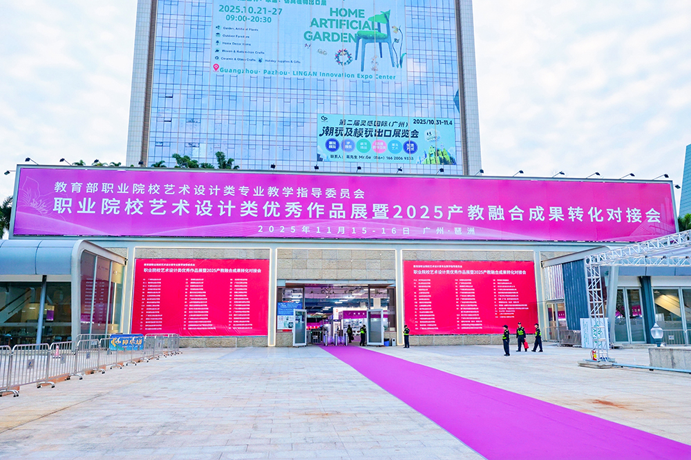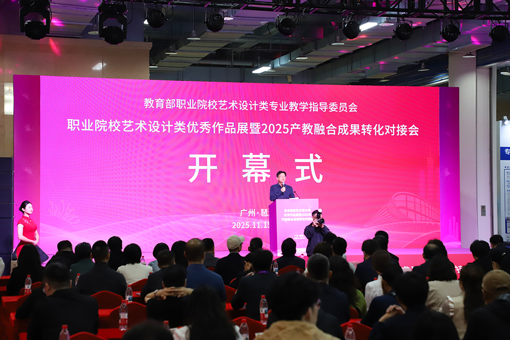 11月13日-16日,教育部职业院校艺术设计类专业教学指导委员会主办的全国职业院校艺术设计类优秀作品展暨2025年校企融合成果转化对接会在广州举行。我校校长、博士生导师张广军带队,教务处、美术系、时尚工艺系、视觉传达设计系、数字艺术设计系、环境艺术设计系等教师代表参加活动。