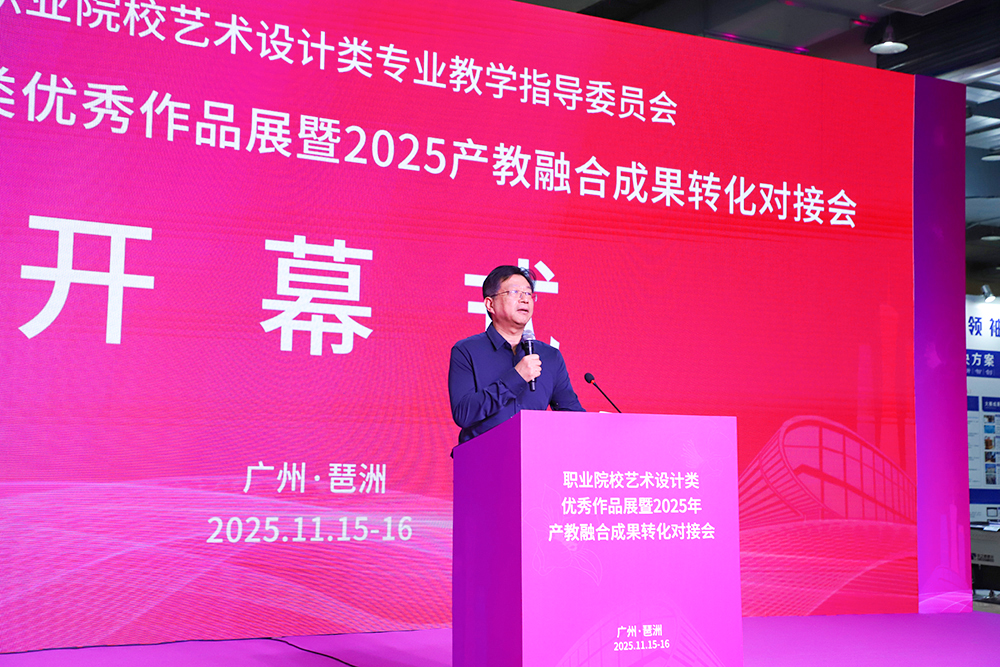 11月15日,我校校长、教育部职业院校艺术设计类专业教学指导委员会美术书画类专委会副主任、博士生导师张广军受邀出席在广州举办的全国职业院校艺术设计类优秀作品展暨2025年校企融合成果转化对接会,致开幕词,并主持开幕式。