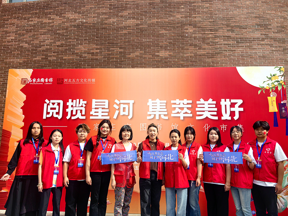 支部依托纤维艺术非遗工作室、校企合作实训工坊等平台,积极推动学生扎染、书法等作品转化为文创产品,并通过校地联动市集提升品牌辐射力。师生团队携掐丝、漆扇、武强年画等非遗技艺亮相石家庄市图书馆“阅揽星河 集萃美好”国庆文化市集,逐步打造具有文化传播力、社会影响力和育人带动力的文创品牌,实现“品牌树形象、合作聚资源、发展惠师生”的目标。