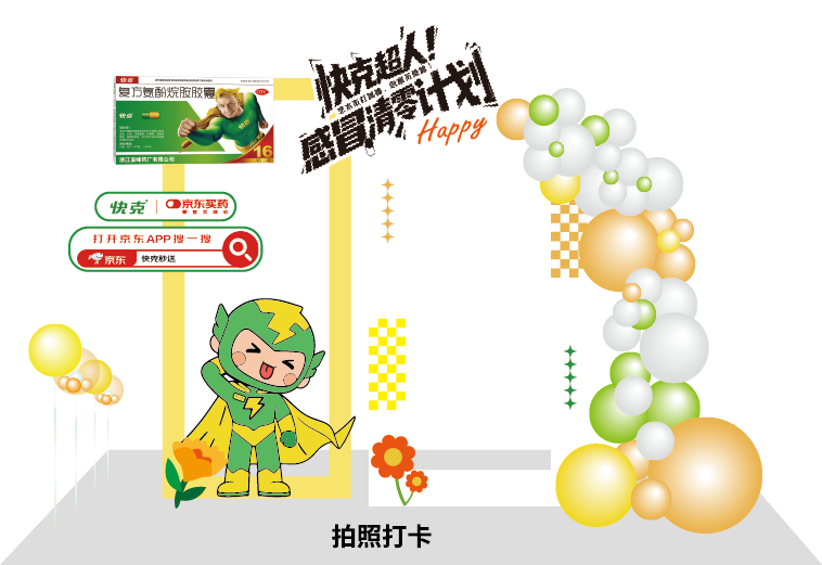 通关前两关后,玩家与现场“快克超人”巨型立牌合影,配文带话题“#快克就是快和#快克感冒清零计划并@快克”发布抖音平台,即可完成“清零挑战”,领取奖励。