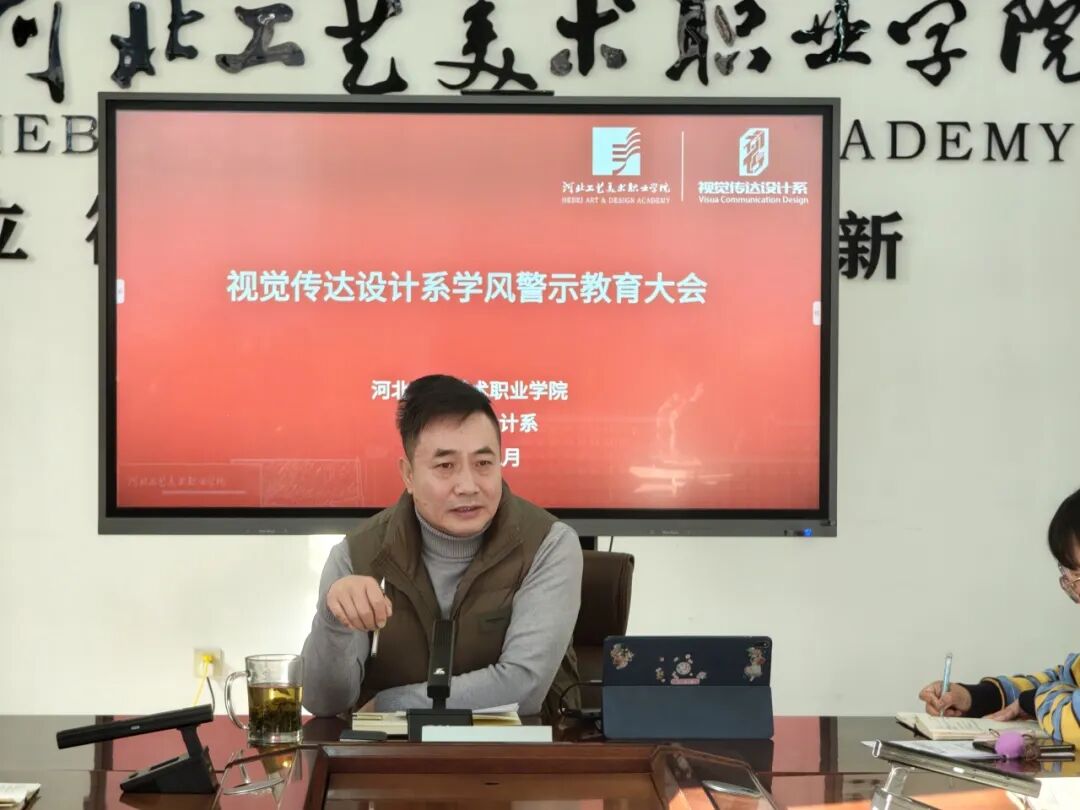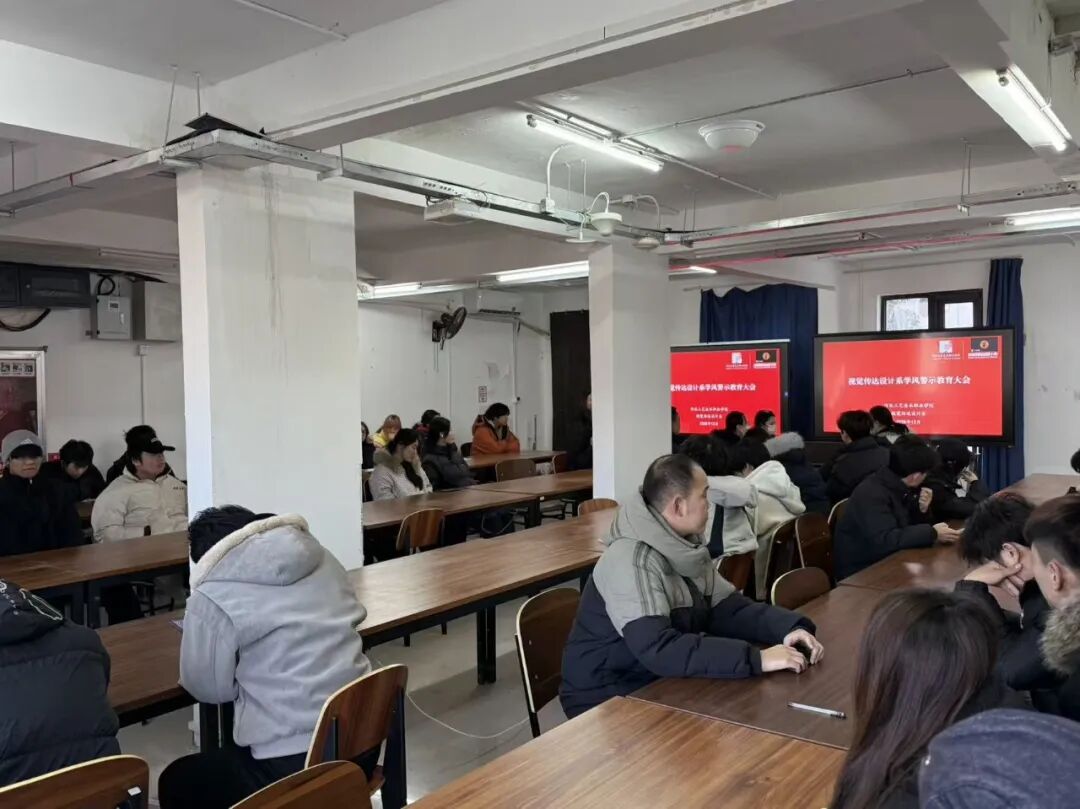 为进一步加强学生纪律意识、学习意识和安全意识,引导学生端正学习态度,强化学业预警管理,筑牢学风建设根基,2025年12月24日,视觉传达设计系召开学风警示教育大会,系党总支书记王培良出席会议并讲话。达到学风预警红线的学生及2024级、2025级学生干部代表参加会议。本次会议由副科级辅导员白司茗主持。