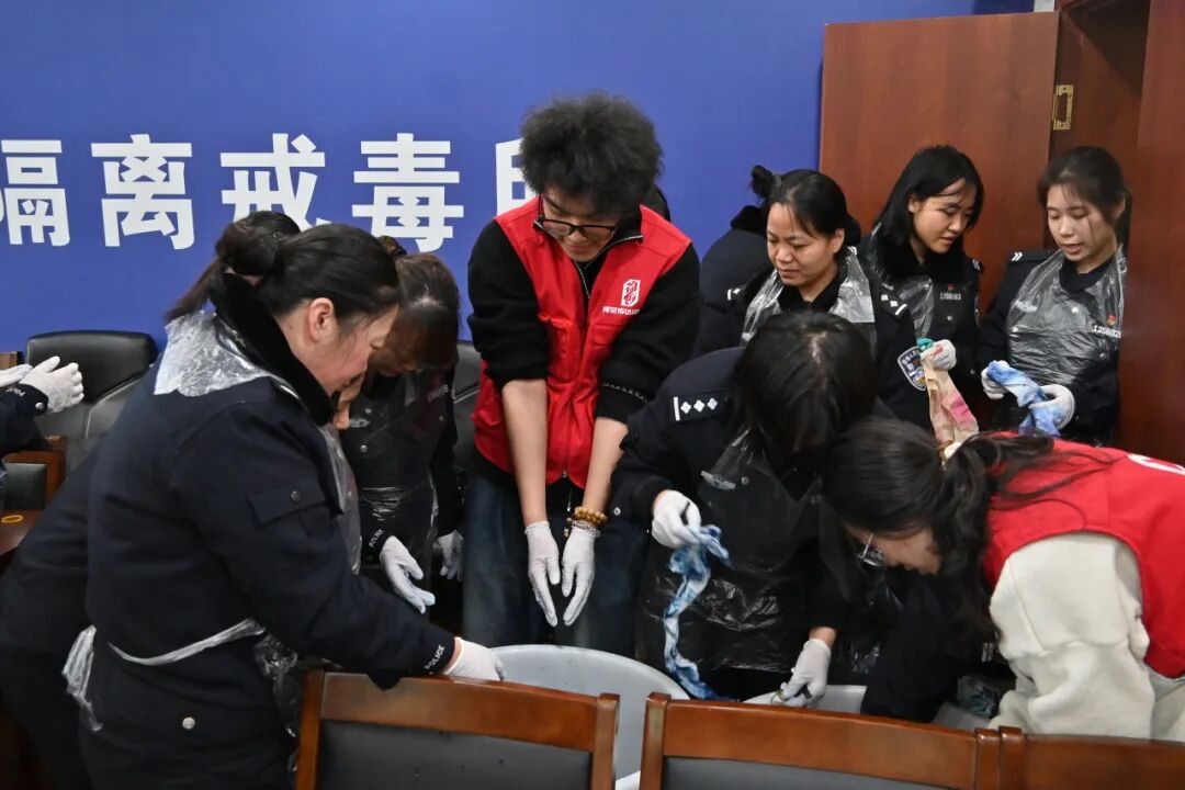 大家围坐一起,动手体验、交流创作,在色彩晕染间创作独一无二的作品,现场气氛温馨热烈。一扎一染,既是传统技艺的传承,也是匠心与温情的交融。通过非遗文化交流与暖心志愿服务,既丰富了女警官们的精神文化生活,也展现了我系青年学子服务社会、奉献爱心的责任与担当,让雷锋精神在艺术实践中焕发新的时代光彩。