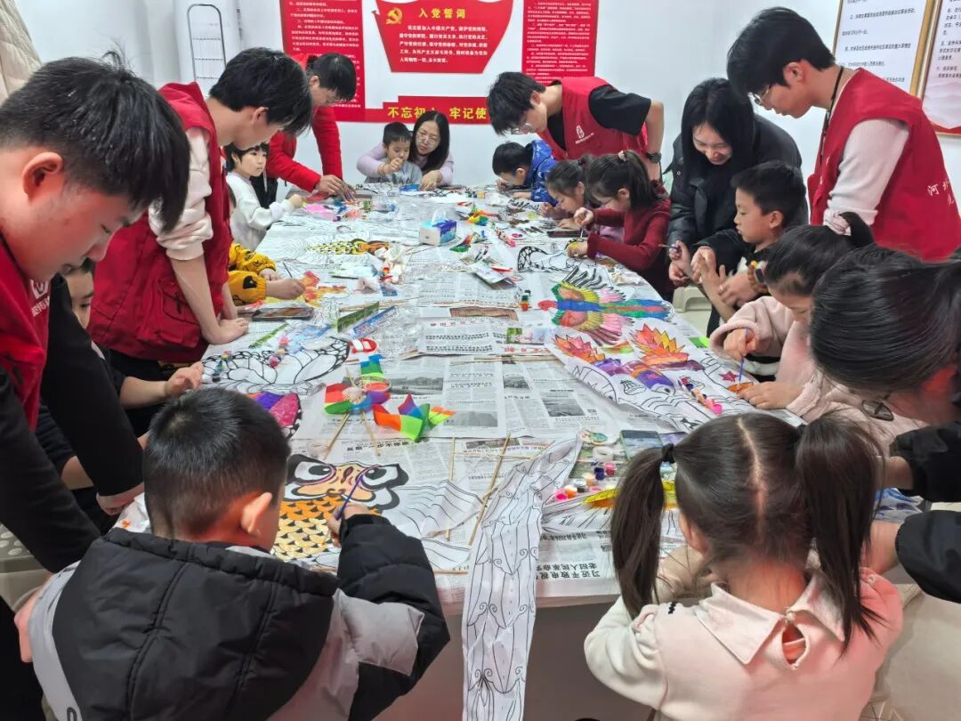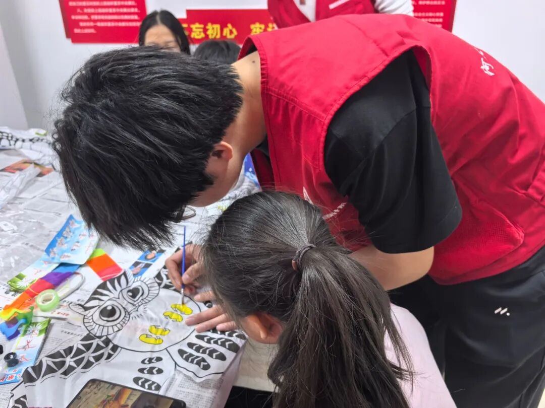 家长与孩子携手创作,邻里间相互交流鼓劲,支部团员青年们穿梭在各个创作小组之间,用专业能力为大家的创意保驾护航。在团员们的指导下,一只只素白的风筝被赋予缤纷色彩,变成独一无二的创意作品,每一笔色彩、每一个图案,都承载着大家对美好生活的期许。活动中,亲情与邻里情交织,艺术与生活相融,小小的活动区里,处处洋溢着温馨和谐的氛围。