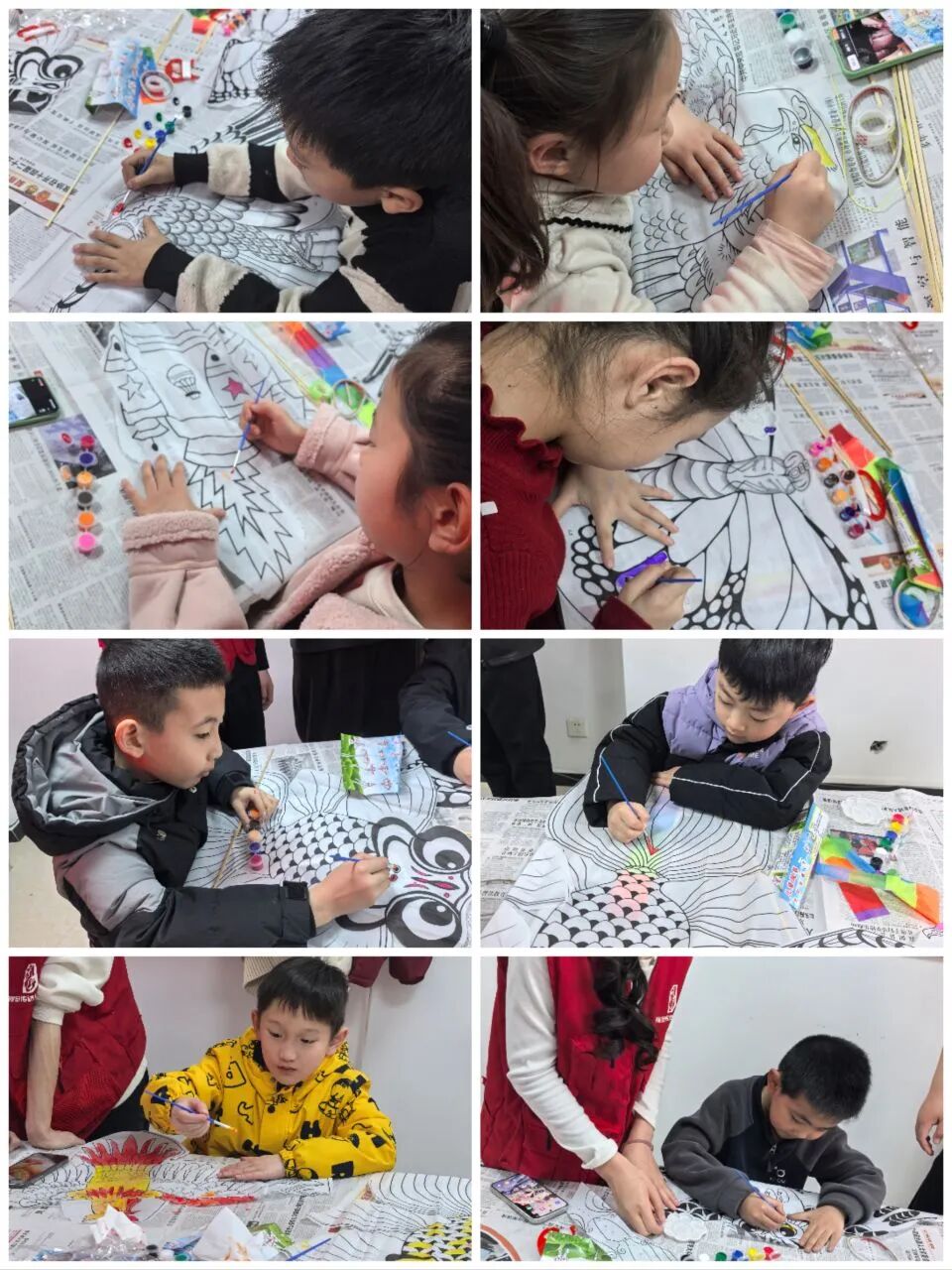 活动现场暖意融融,欢声笑语不断。支部团员青年们化身专业志愿指导老师,率先为家长和孩子们带来风筝文化小课堂,生动讲解风筝的起源、传统制作流程与民俗寓意,让大家在动手创作前感受中华传统民俗的独特魅力。彩绘环节是本次活动的核心,面对零基础的社区居民,志愿者们耐心细致、手把手指导,从线条勾勒的技巧到色彩搭配的秘诀,逐一答疑解惑,鼓励孩子们大胆发挥想象,将心中的春日美好与童真童趣绘于鸢面。