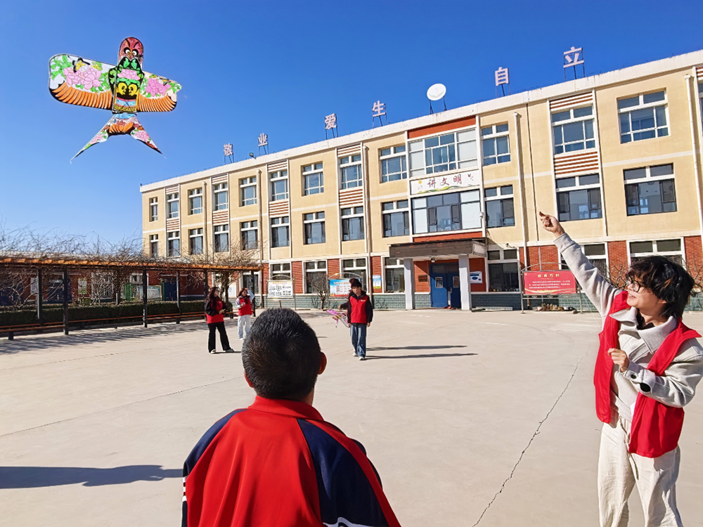手绘纸鸢完成后,志愿者与孩子们一同来到校园空地,开启放风筝的欢乐时光。志愿者手把手协助孩子们放线、奔跑,一只只五彩斑斓的纸鸢迎着春风扶摇而上。此刻,春风托起的不仅是缤纷的纸鸢,更承载着孩子们纯粹的快乐与满满的自信。