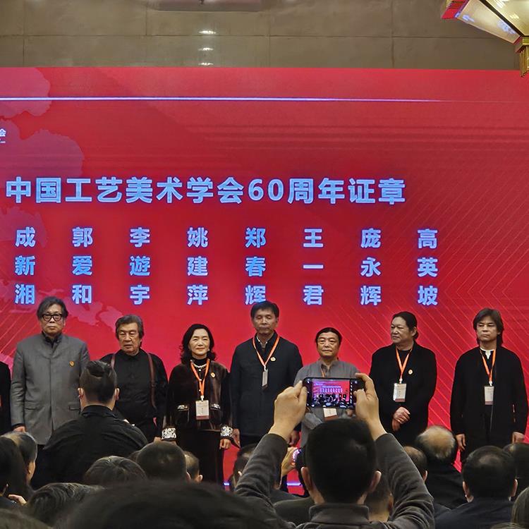 12月21日,值此中国工艺美术学会成立60周年之际,我校教师、中国工艺美术大师庞永辉、高英坡,荣获学会颁发的60周年证章。庞永辉、高英坡两位大师,分别是定瓷与石雕领域的代表性传承人与领军者,他们长期深耕于非遗技艺的传承与创新,将传统工艺与现代审美、生活应用深度融合,其作品屡获国内外重要奖项,在业界享有崇高声誉。同时,作为我校的教学科研骨干,他们也是培养工艺美术后继人才的核心力量。中国工艺美术学会60周年证